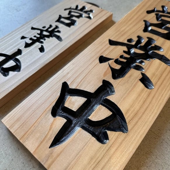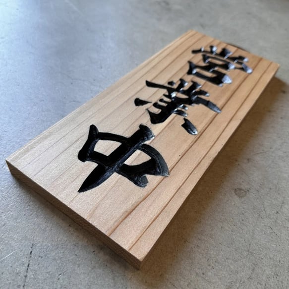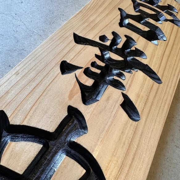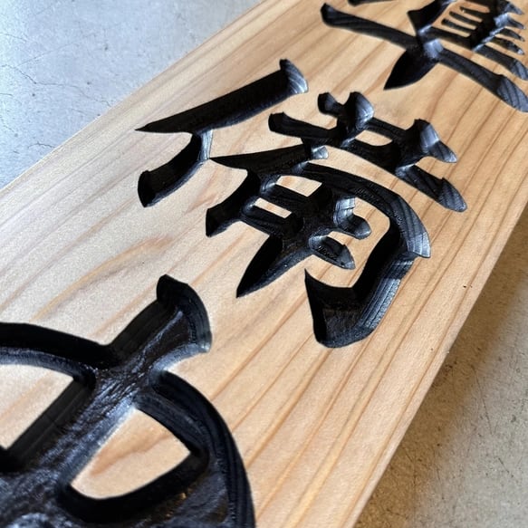 国産天然杉の、無垢材に彫刻を施して製作しました。深く彫刻された表面は重厚感があり、とても迫力があります!