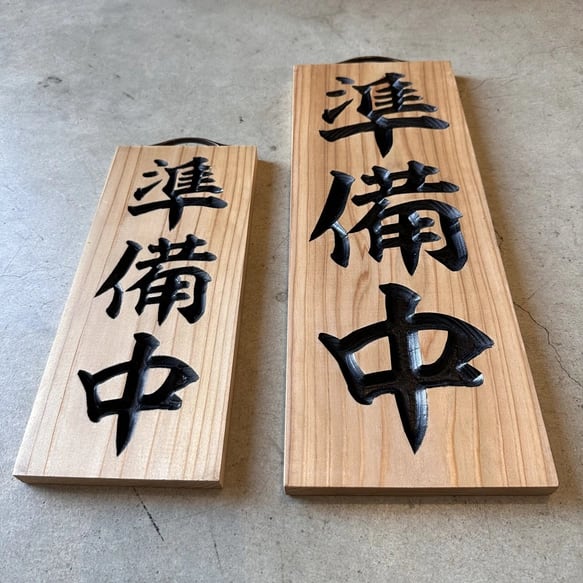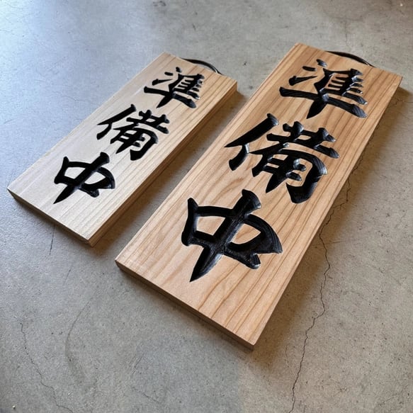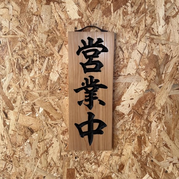 営業中看板 彫刻タイプ 自社生産 木製 表裏リバーシブル